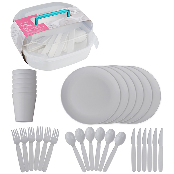 סט כלי אוכל לקמפינג ולפיקניק רב פעמי עם 32 חלקים