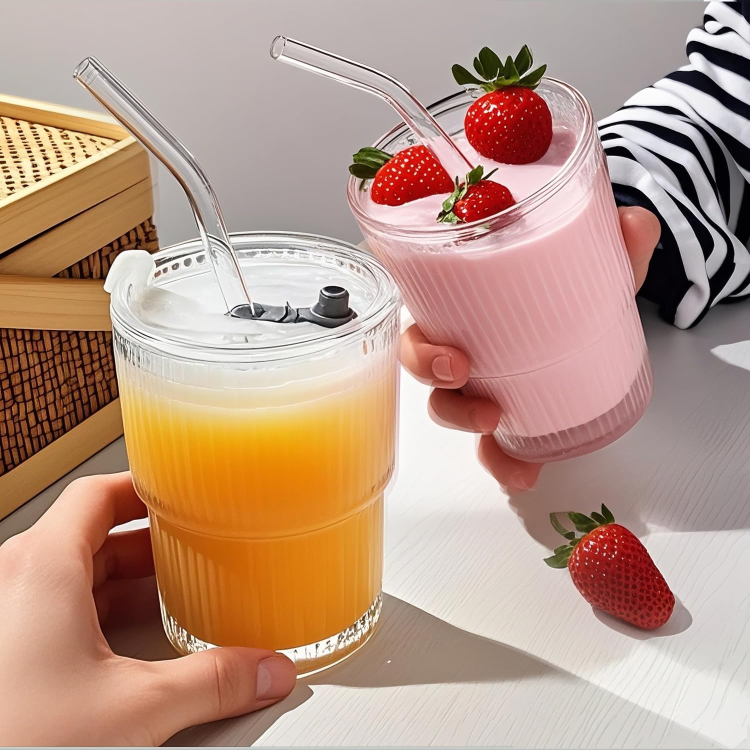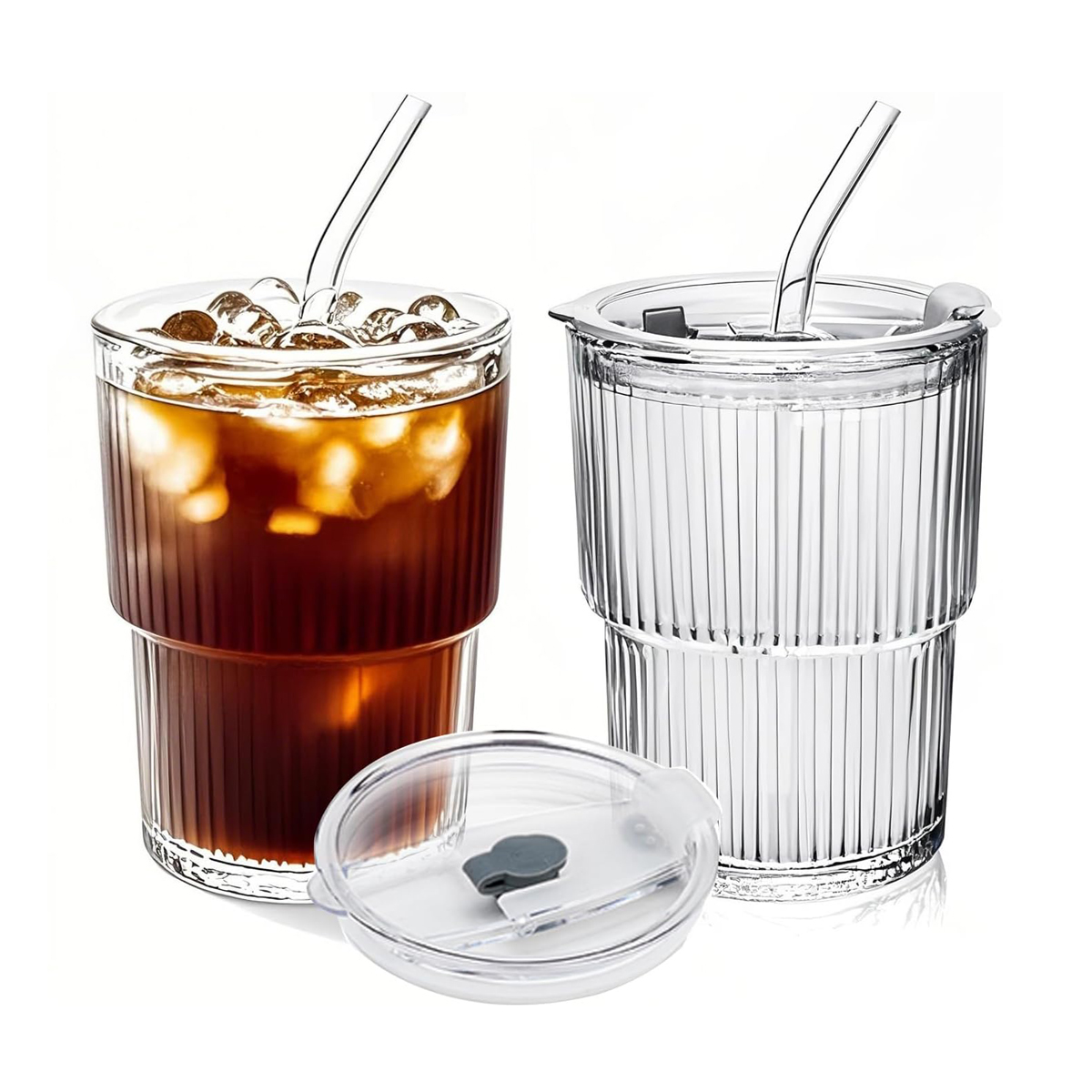 כוס שקופה בעיצוב משגע עם מכסה פלסטיק לשתייה חמה/ קרה,