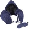 כרית נסיעות לצוואר מרופדת עם קפוצ'ון וכיסוי עיניים לצוואר