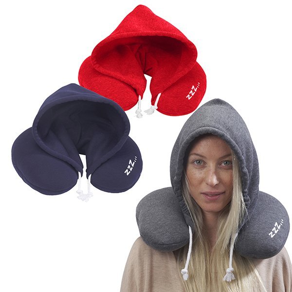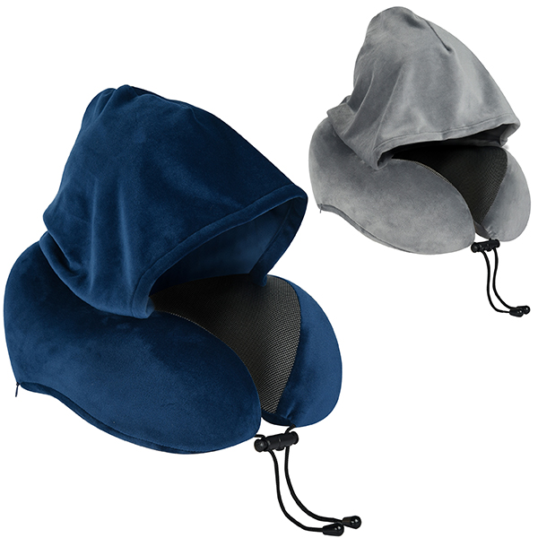 כרית נסיעות לצוואר מרופדת עם קפוצ'ון וכיסוי עיניים לצוואר.