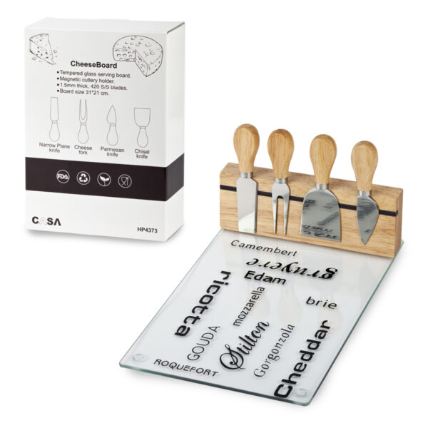 מגש זכוכית ומגנט כולל 4 כלים לגבינה