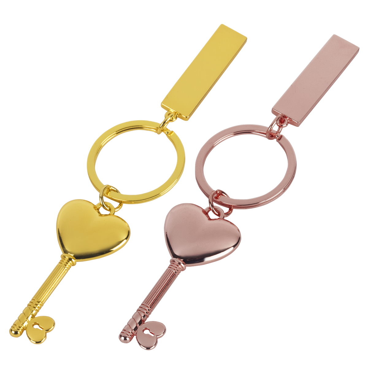 מחזיק מפתחות לב זהב או ורוד עם אופציה לחריטה אישית על לוחית ומתנה ללקוחות