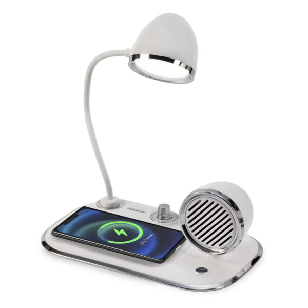 מעמד עם רמקול ומנורה לטעינה אלחוטית מהירה כולל: