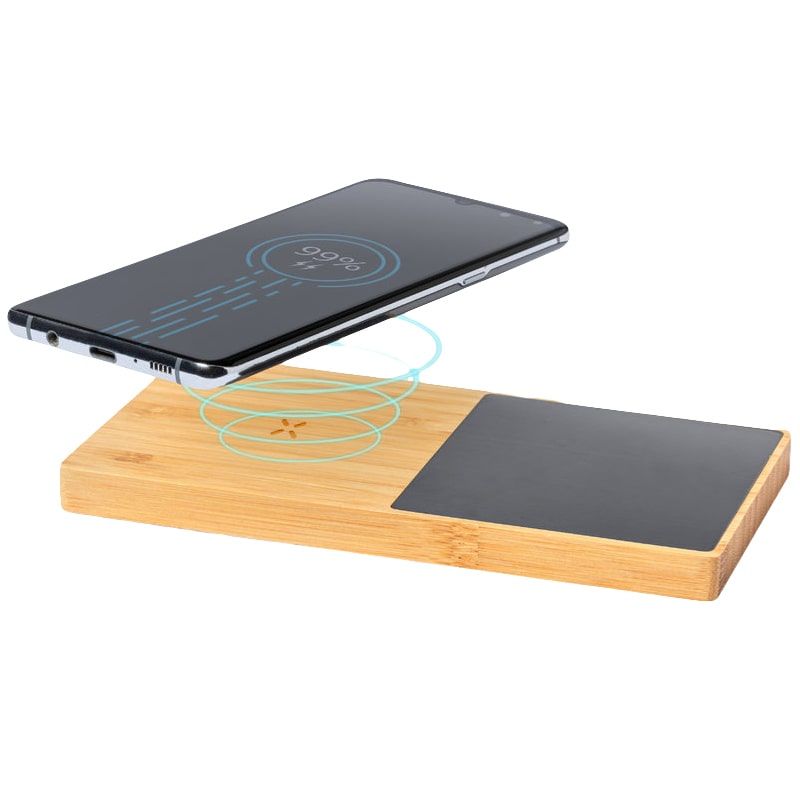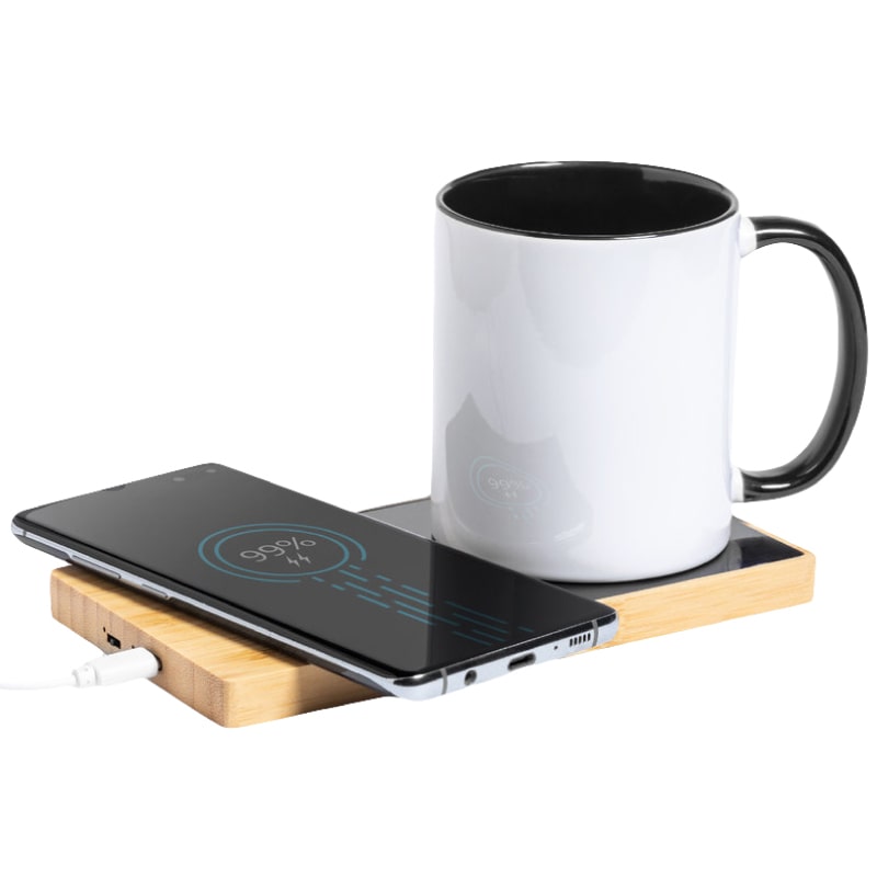 בעוצמה של 15W FAST CHARGER ופלטת חימום לספל עשוי עץ במבו איכותי מידות: 9.5X1.2X18.5 ס"מ