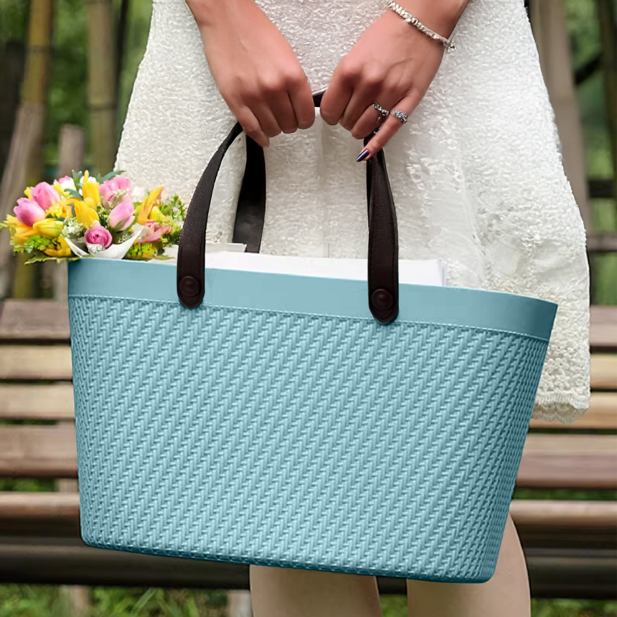 עשוי מחומר איכותי במרקם קלוע אלגנטי וידיות נשיאה עבות