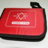 ערכה לעזרה ראשונה בתוך תיק עם רוכסן סביב.