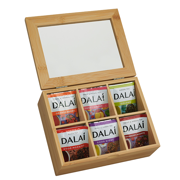 קופסה לתיונים 🍵מעץ במבוק טבעי בעיצוב קלאסי עם 6 תאים ומכסה שקוף מזכוכית.