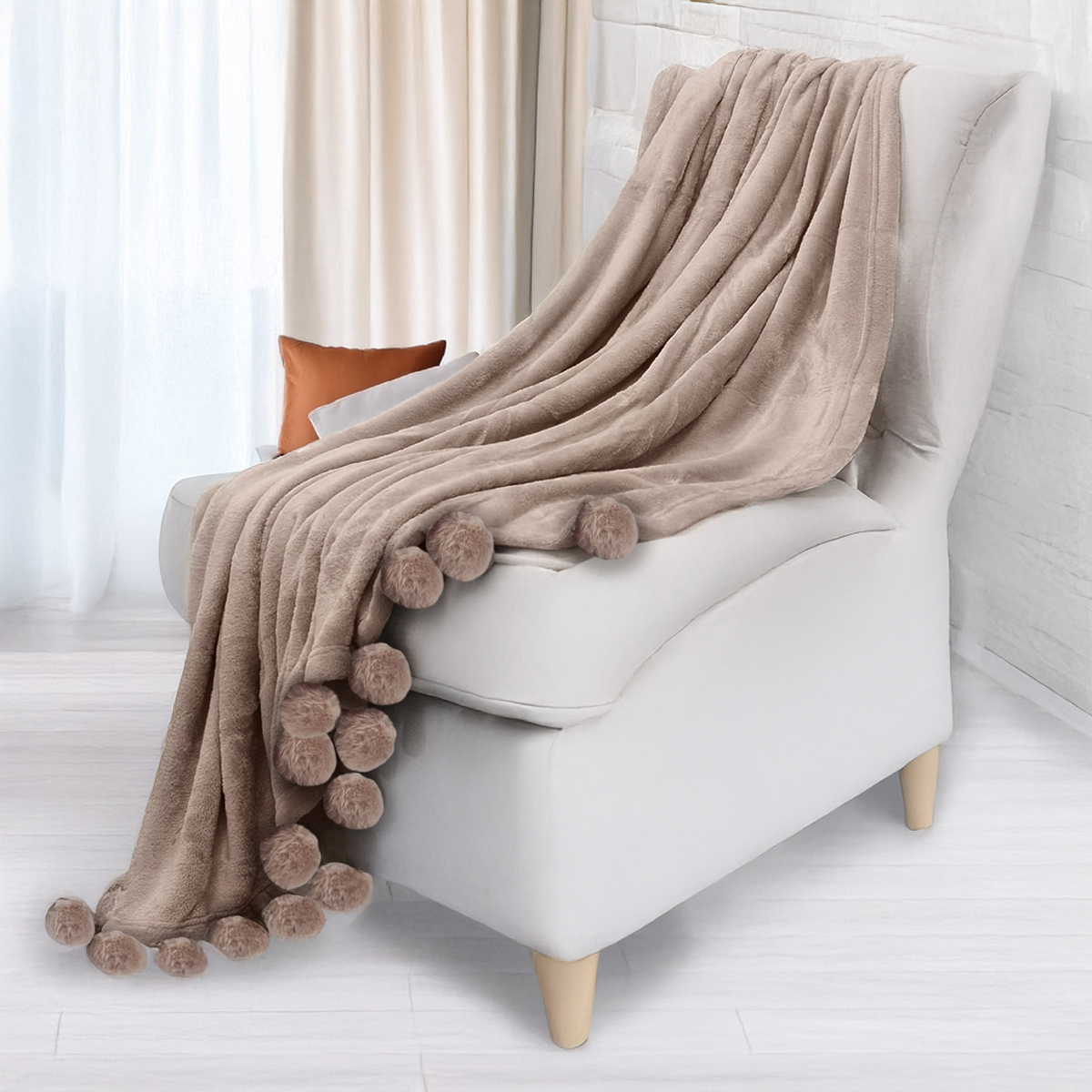דף הבית » קטלוג » שמיכת קורל פליז עם פומפונים