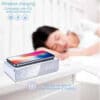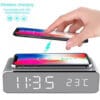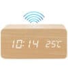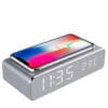 שעון דיגיטלי עם משטח טעינה אלחוטי דקורטיבי במבחר צבעים.