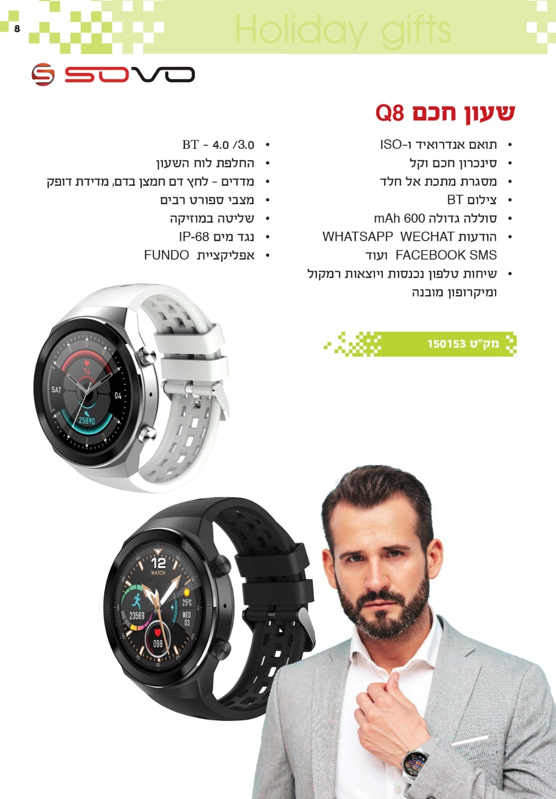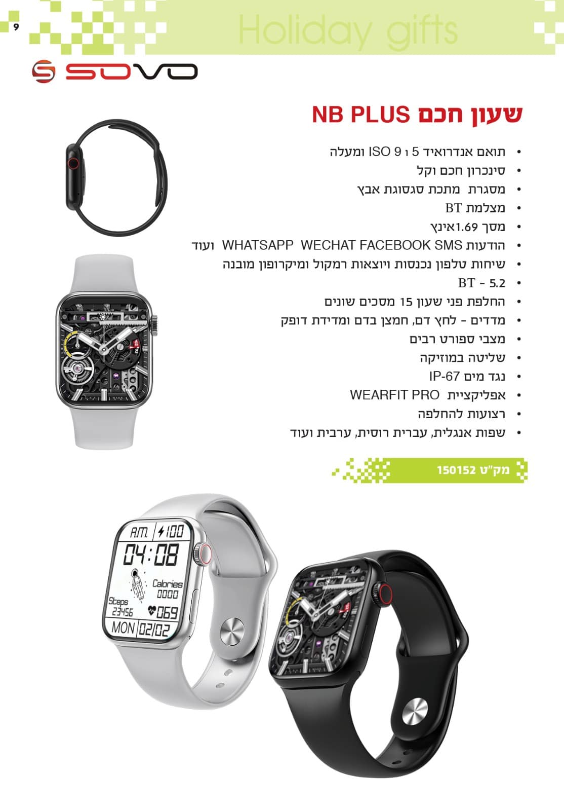 מד צעדים/ קורא הודעות עברית אנגלית WHATSAPP ו SMS / בודק איכות השינה