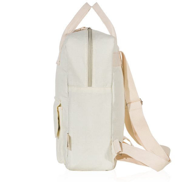 תיק גב אקולוגי למחשב נייד מכותנה ממוחזרת בצבע לבן שמנת