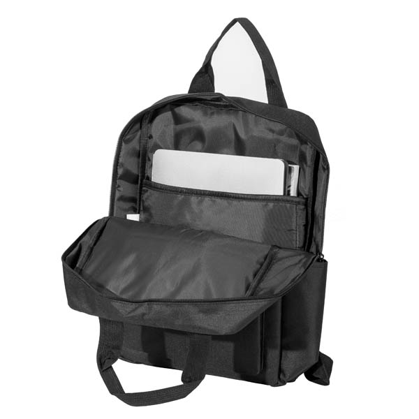 כולל: תא מרכזי גדול עם פנימי מרופד ללפטופ וכיס קדמי, תא בכל צד לבקבוקי שתייה.